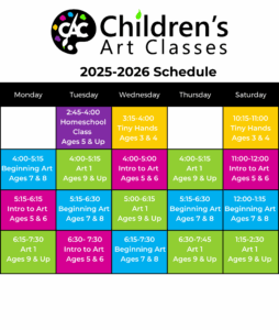 Classes rotate over a 2-year cycle. Enroll at anytime and support your child’s artistic creativity.